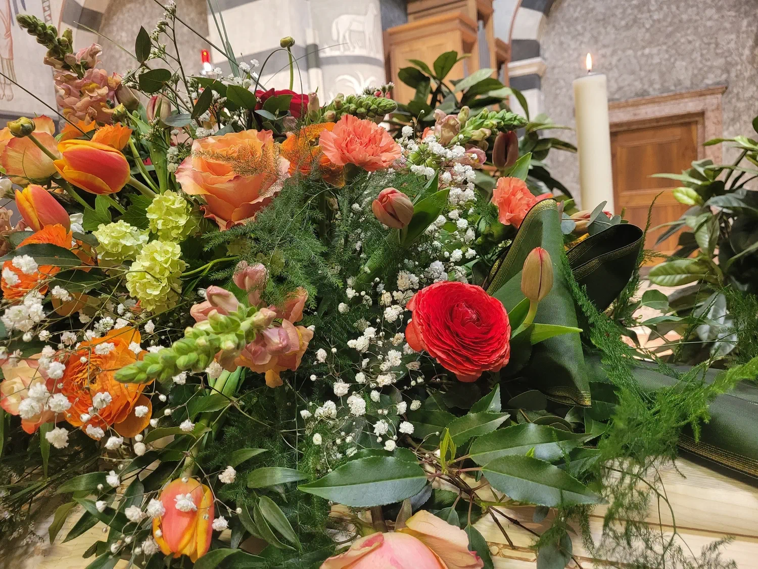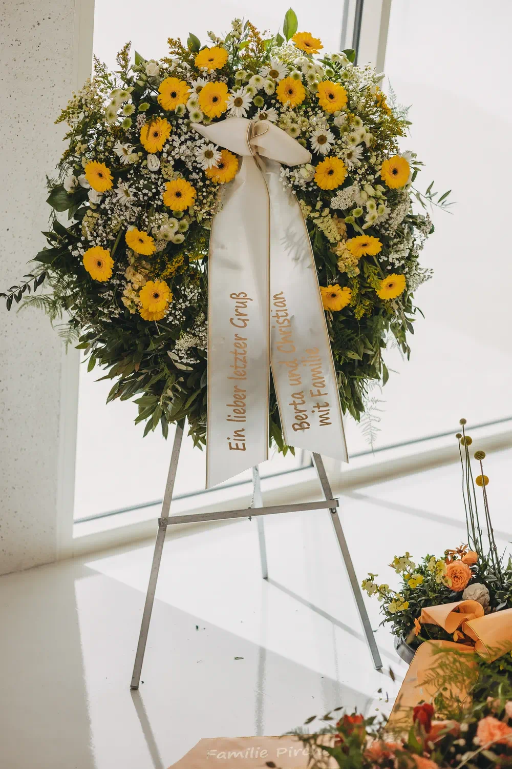 Durch eine gute Zusammenarbeit mit lokalen Floristen und Gärtnereien wie der Gärtnerei Wielander ist es uns möglich unkompliziert Blumen und Gestecke für Aufbahrungen und Trauerfeiern auch an Sonn- und Feiertagen zu bekommen. Denn zu unserem Rundumservice gehört auch die Beratung und Organisation der gewünschten Blumen, Kränze und Sarggestecke. Selbstverständlich stehen für uns auch hier ihre Vorstellungen und Wünsche an erster Stelle.