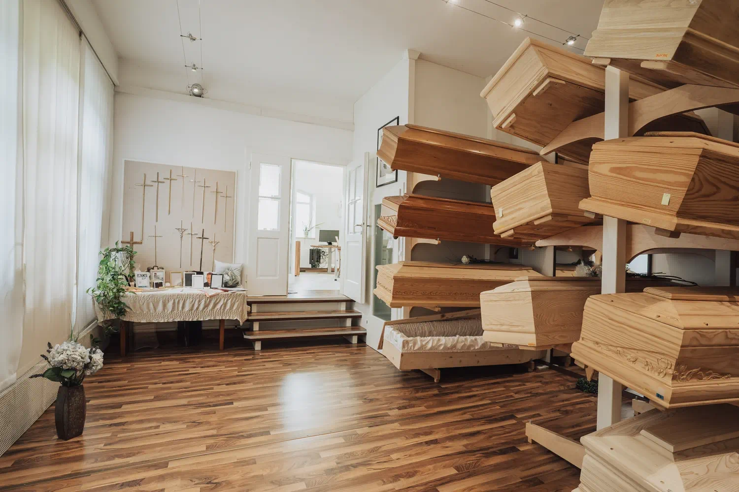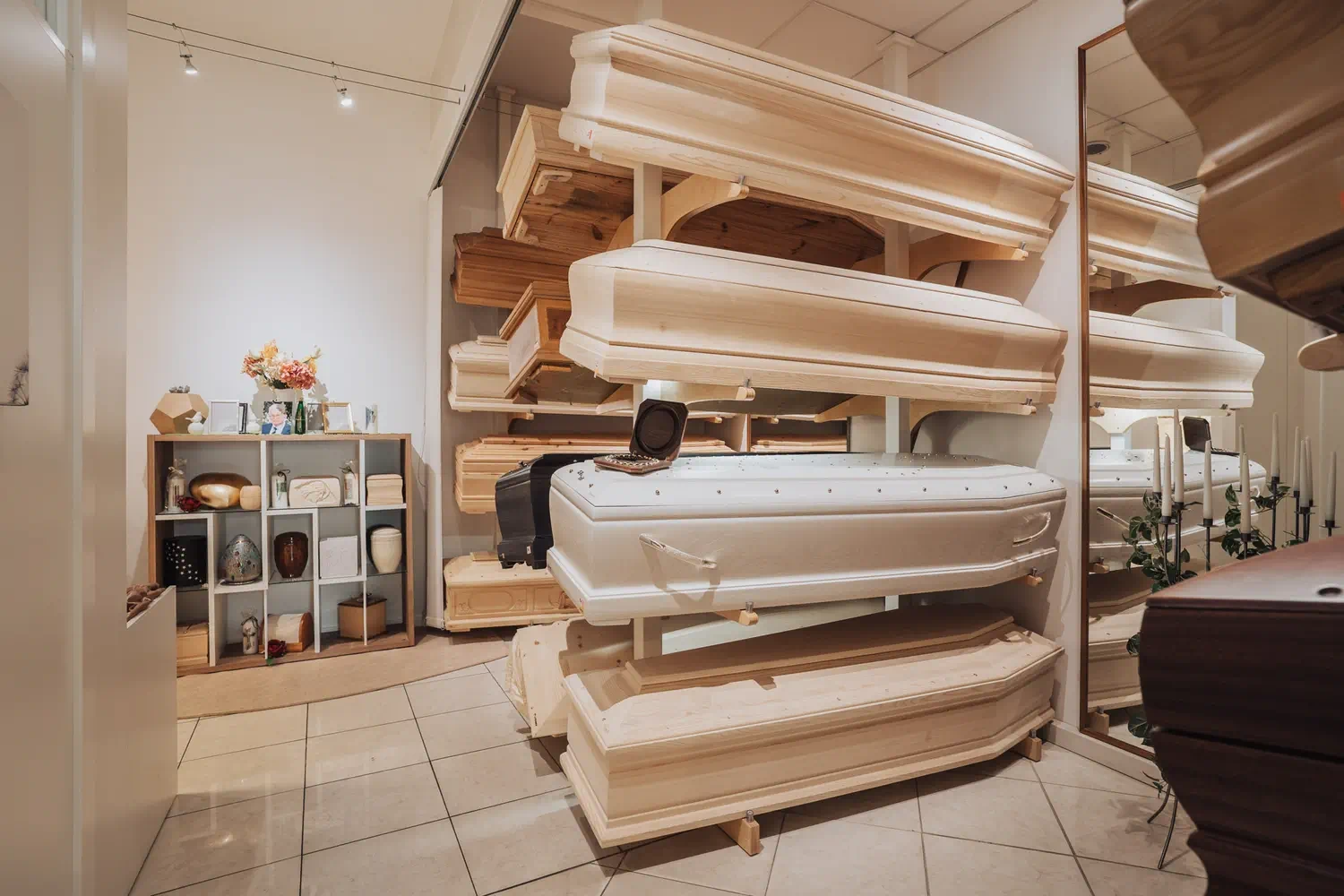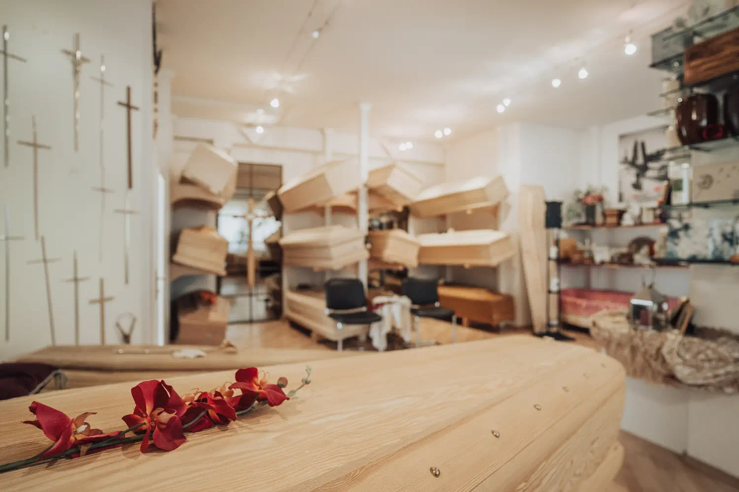 In unseren Ausstellungsräumen finden Sie eine Vielzahl an Särgen. Das Sortiment reicht vom Schlichten hin bis zum Außergewöhnlichen – wählen Sie zwischen unbehandelten Naturholzsärgen, exklusiven behandelten hochwertig lackierten oder mit Intarsien besetzen Särgen, alle stets von hoher Qualität.