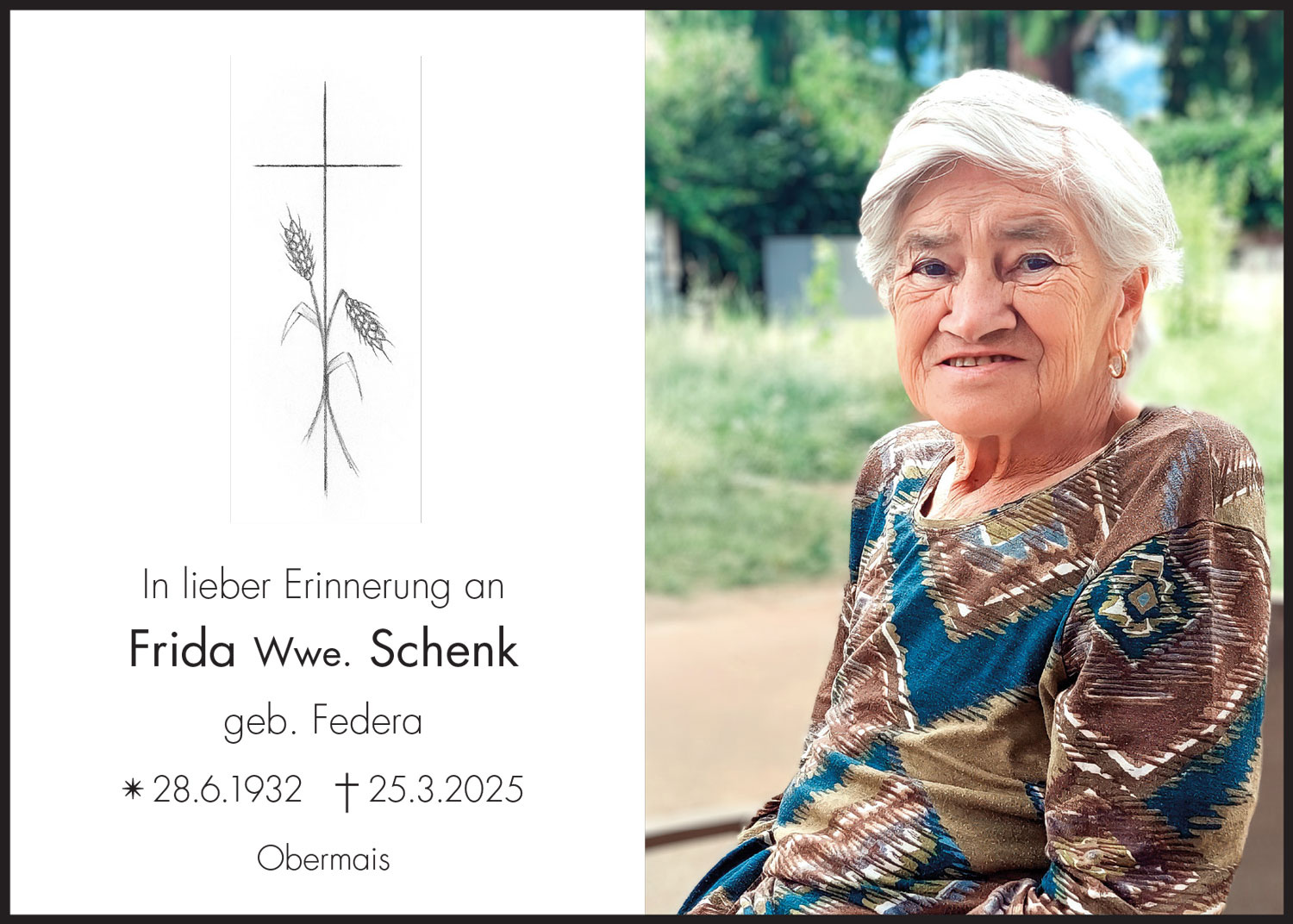 Entzünden Sie als Symbol der Ewigkeit eine Kerze, zum Gedenken an Frida Wwe. Schenk geb. Federa.