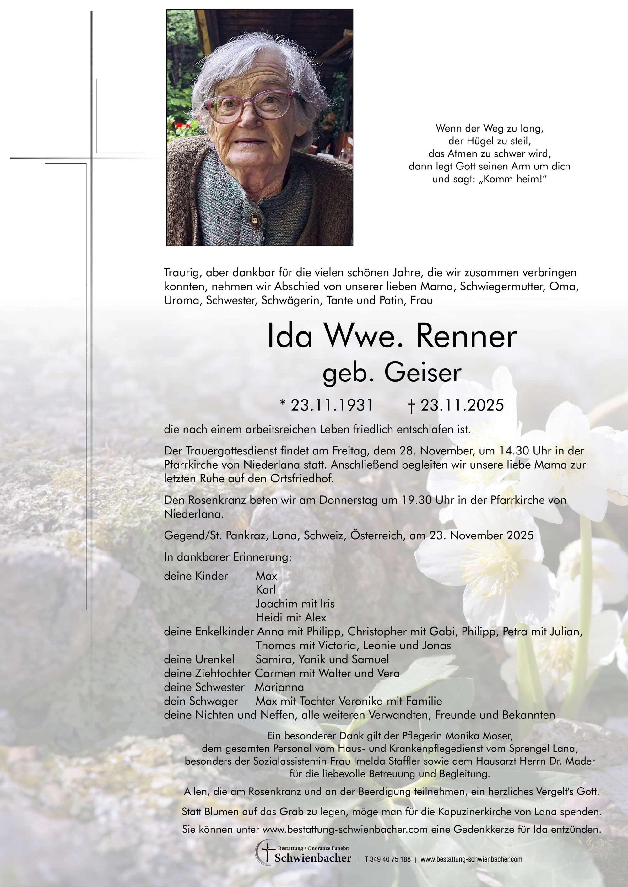Für einen Trauerfall in Lana oder jegliche Fragen wenden Sie sich am besten an: