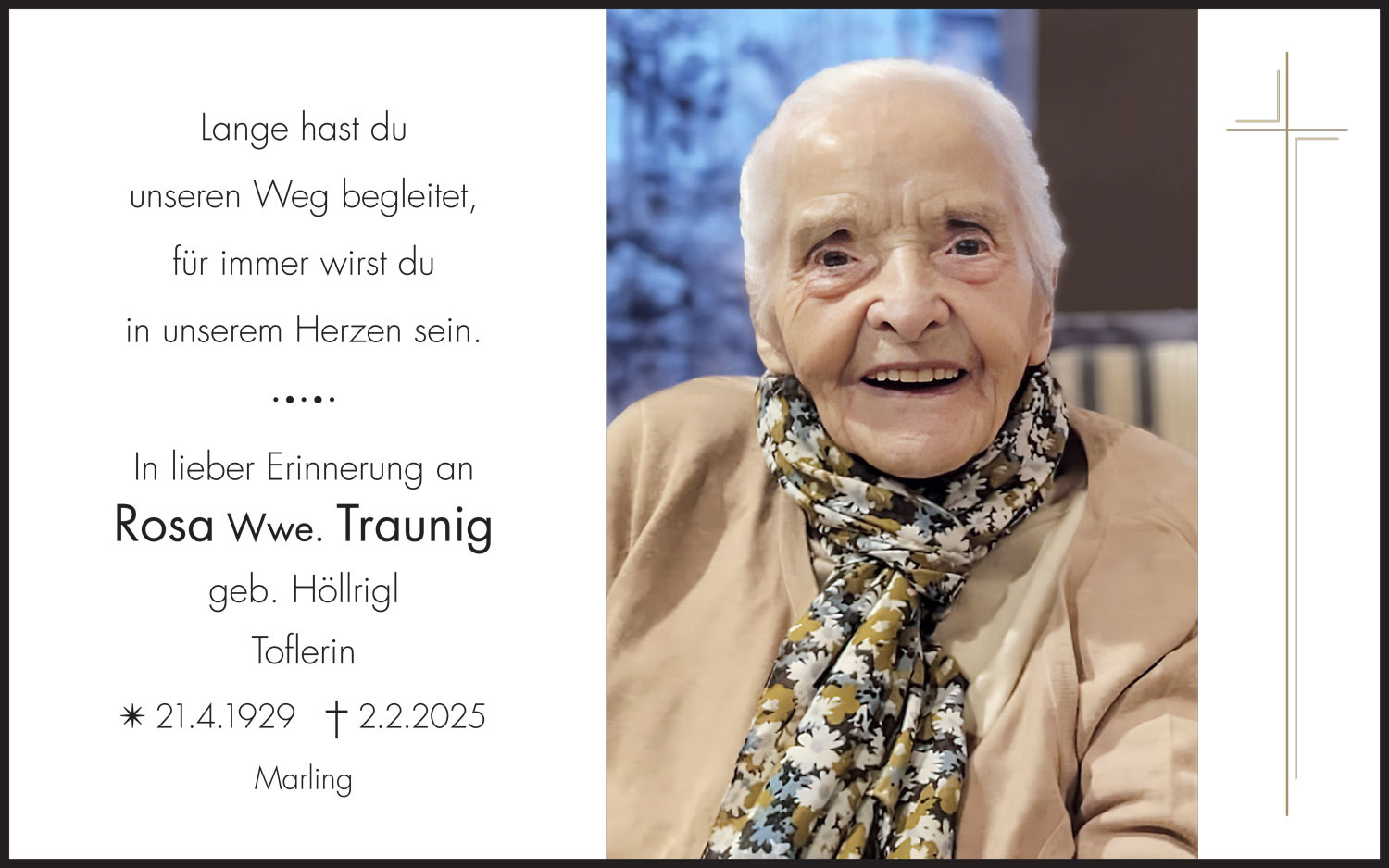 Entzünden Sie als Symbol der Ewigkeit eine Kerze, zum Gedenken an Rosa Wwe. Traunig geb. Höllrigl.
