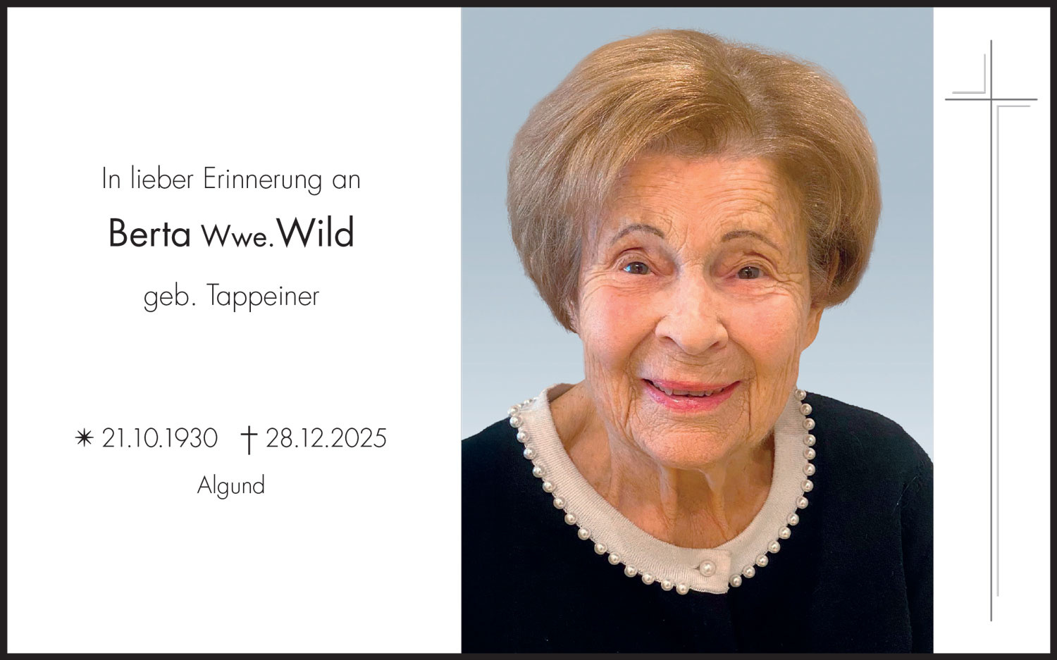 Entzünden Sie als Symbol der Ewigkeit eine Kerze, zum Gedenken an Berta Wwe. Wild geb. Tappeiner.