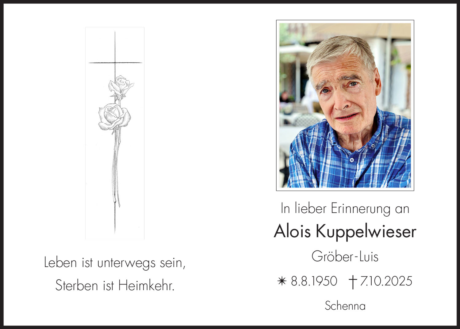 Entzünden Sie als Symbol der Ewigkeit eine Kerze, zum Gedenken an Alois Kuppelwieser.